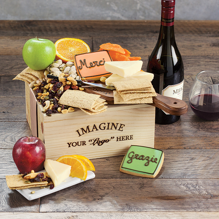 At Olive & Cocoa, we specialize in helping businesses make a lasting impression with clients, colleagues, and employees through offering the best corporate gifts. Whether you're thanking a business associate for their contribution to a project, wishing a client the best of luck in their new venture, or congratulating an employee on a life event, you're sure to find the perfect gift in our wide range of classic business gifts. No matter the reason or occasion, we have just what you're looking for. Every business gift is beautifully presented in a hand-crafted wood crate with ribbon or market wrap. We also offer custom hot-iron branding to make your corporate gifts and gift baskets stand out above the rest!