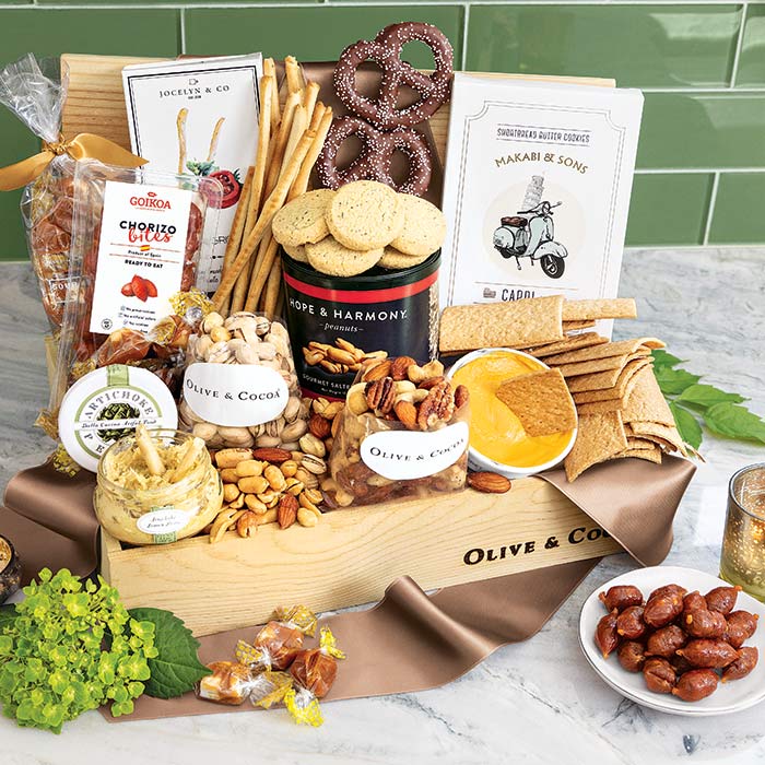 Our snack gift baskets also make a wonderful gift for anyone who appreciates elevated snacking. Surprise someone special with a delicious assortment they'll truly enjoy. Whether you're sending thanks, love, appreciation, or simply saying hello, our Sweet & Savory collection is a beautiful way to share something memorable. And with Olive & Cocoa, gifting is effortless-just choose your favorite basket, and we'll deliver it to any home, office, or apartment.