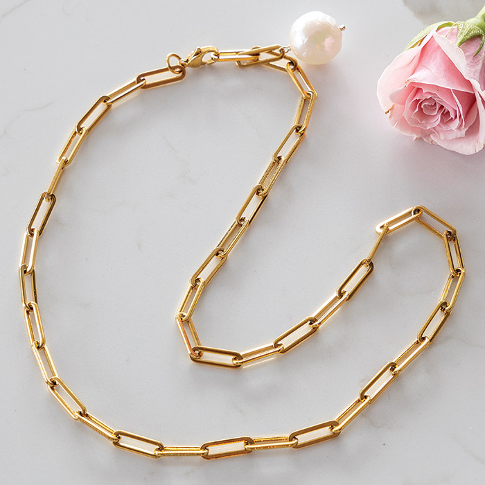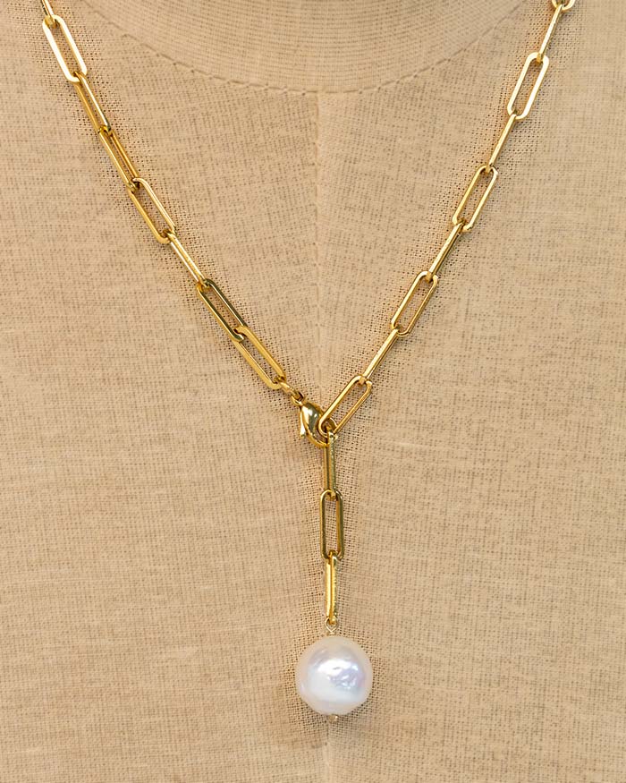 A glint of gold and an iridescent baroque pearl combine for a show stopping piece of jewelry. Adjustable to lengthen or shorten the drop of the pearl pendant, necklace has a lobster clasp closure and is crafted of 14-karat gold plated brass. Pearl & Chain Link Necklace measures approximately 20" long and arrives gift wrapped in a hand crafted wood crate with ribbon.